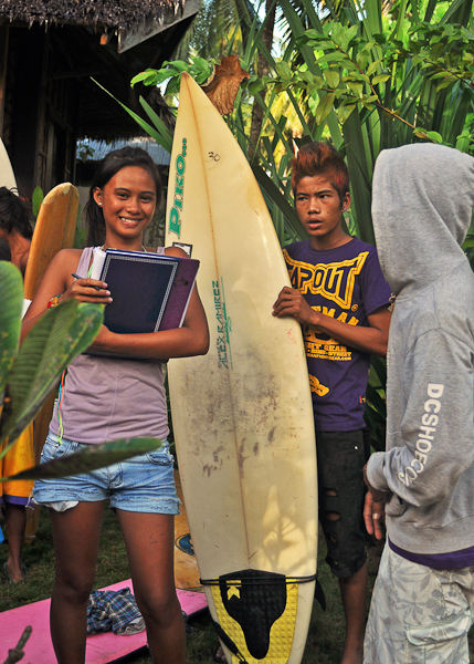 One of our older members, Ikit Agudo, is a genuine soul surfer. Everyday, she gets home from high school and immediately finds out where it’s breaking. The youngest of a large brood of surfers, she learned how to surf from all her brothers right outside their compound. She is a huge help to Balikbayod, volunteering her time to check in and out the surfboards everyday after her surf session. She has also recruited her girlfriends to get more girls in the line up. She hopes to attend college in Surigao City or Cebu and study Hotel and Restaurant Management. When asked why she doesn’t want to go to Manila for college, she says, “I want to be close to home because it’s paradise.”